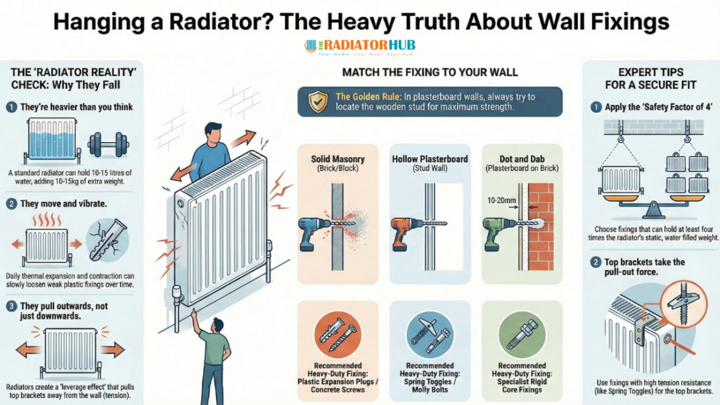 Is your wall ready for the heat? A radiator filled with water weighs significantly more than you think. We break down why standard rawl plugs often fail and rank the heavy-duty fixings, from Spring Toggles to Molly Bolts, that actually keep your radiator on the wall. Read the full safety guide before you drill.