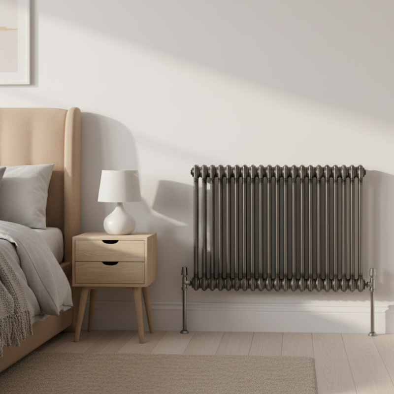 The Aura 2 Column Horizontal Radiator is a timeless heating solution designed to suit both modern and traditional UK homes Made from strong mild steel this horizontal designer radiator provides reliable warmth while maintaining a clean and balanced appearance Its two column design offers efficient heat output and makes it ideal for living rooms bedrooms and hallways with wider wall spaces