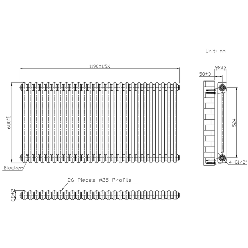 | Depth Wall to Face (mm) | 114 | Pipe Centres (mm) | 1190 |
