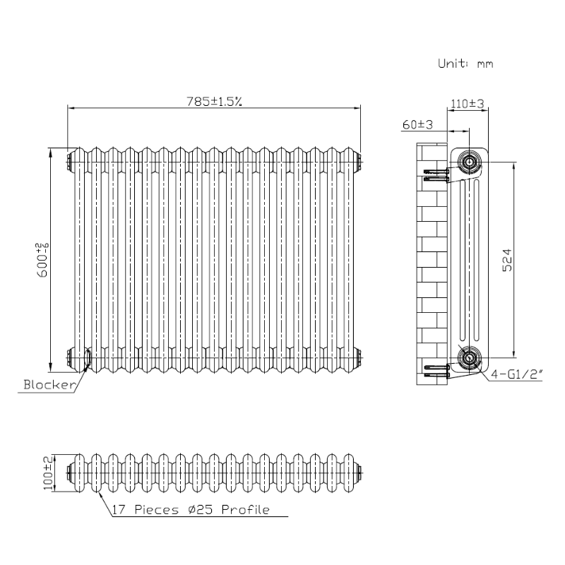 | Wall to Pipe Centre (mm) | 63 | Height (mm) x Width (mm) | 600x785 |