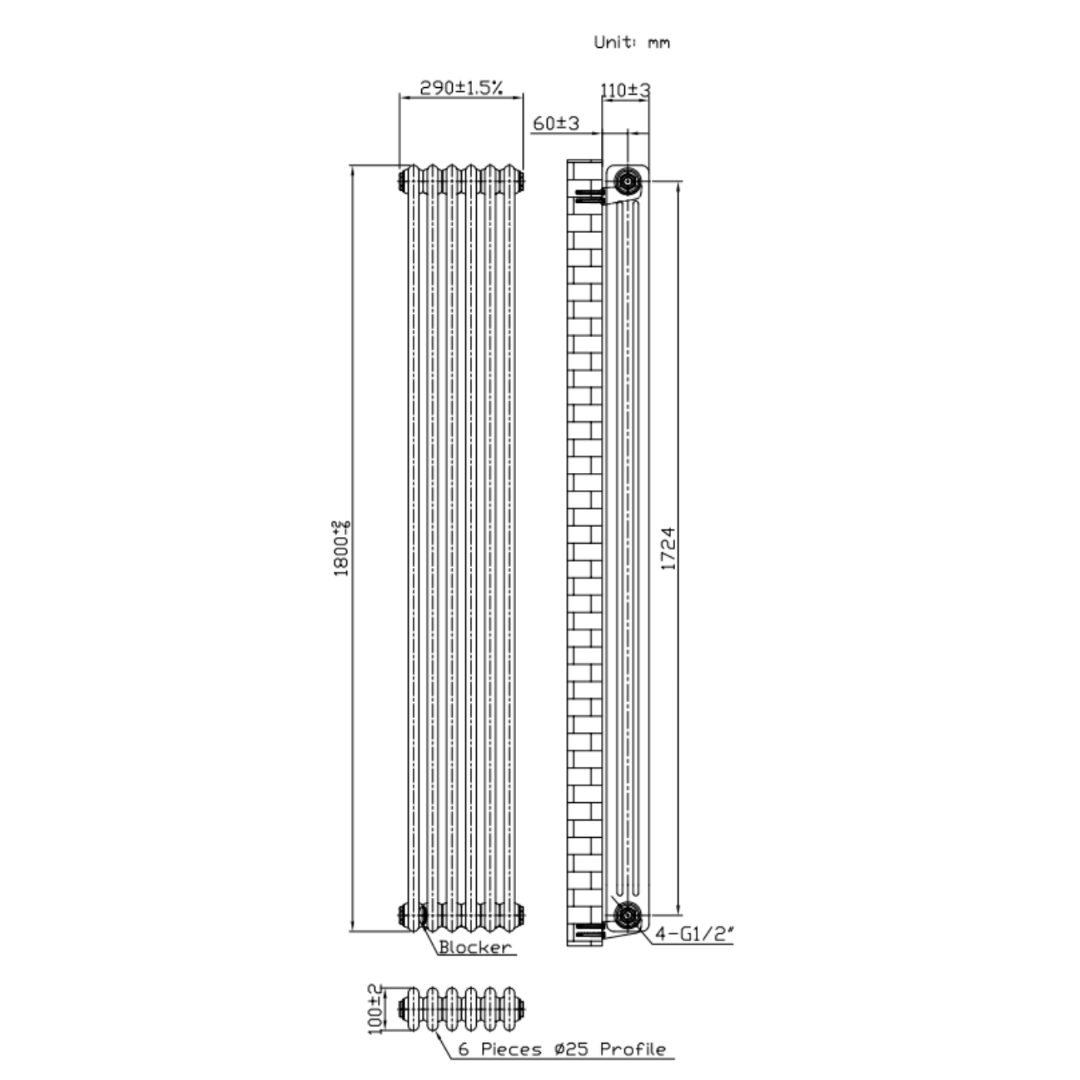 With its vertical wall mounted style the radiator maximises space while adding elegance to your room. Easy to install with supplied fittings, professional installation is recommended to ensure best performance.