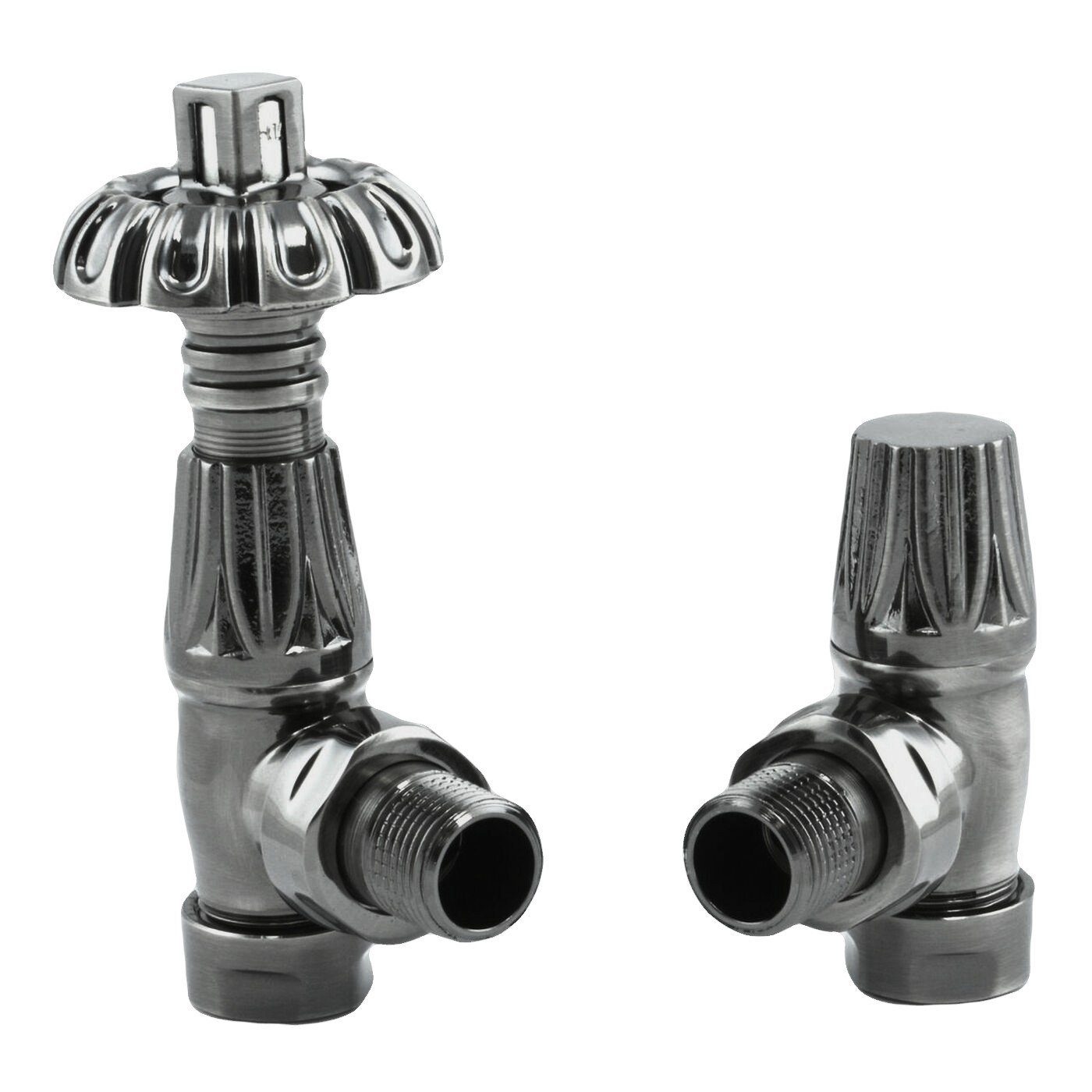 Wonderfully traditional and finished in Black Nickel luxury finish, the TRH Buckingham Ornate Angled TRV Set will be the perfect finishing touch to your traditional radiator. Perfectly designed to complement steel and cast iron column radiators, or provide a quirky touch to a more contemporary radiator, these valves will add charm and elegance to any home setting.