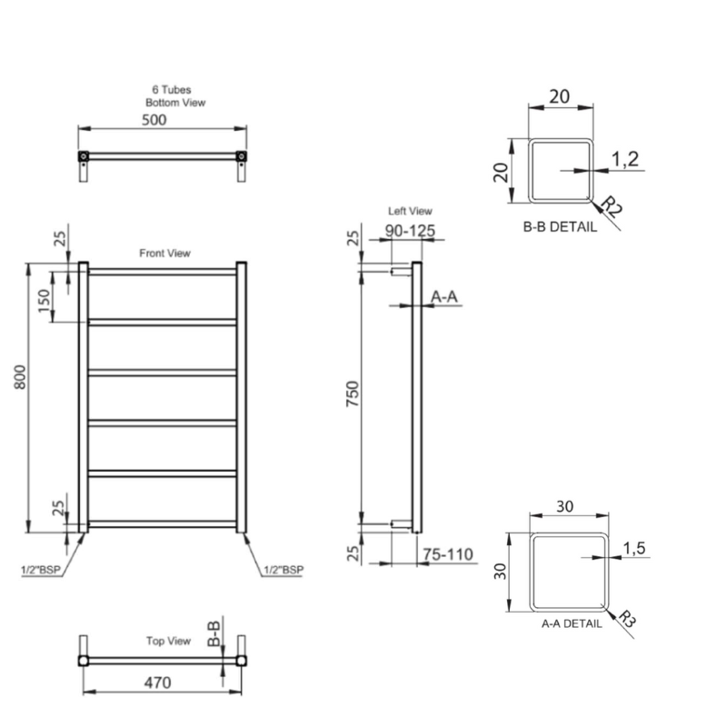 | Wall to Pipe Centre (mm) | N/A | Height (mm) x Width (mm) | 800x500 |