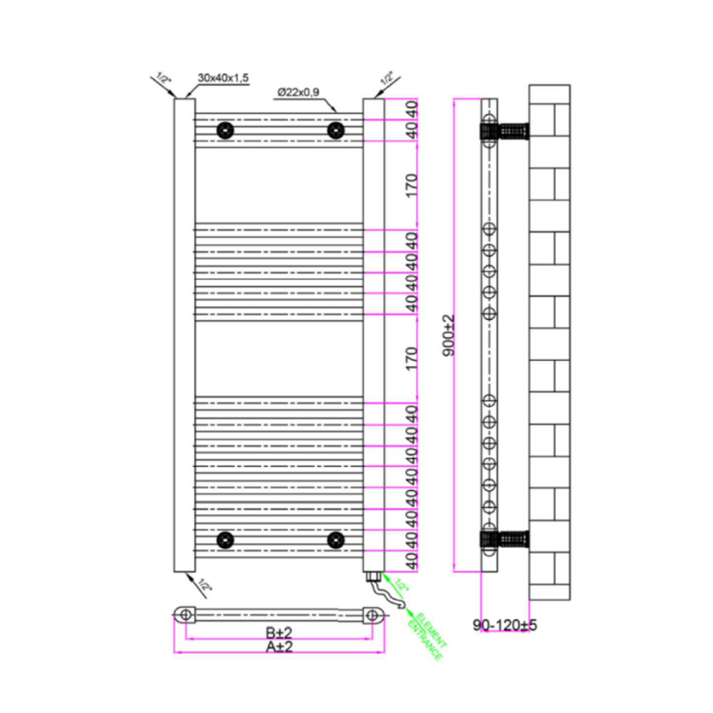 | Wall to Pipe Centre (mm) | N/A | Height (mm) x Width (mm) | 900x500 |
