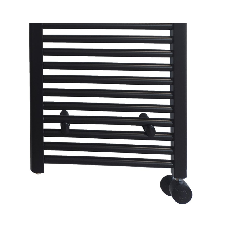The TRH Whitstable Electric Thermostatic Towel Rail in black is a bold and modern heating solution designed for contemporary UK bathrooms Its vertical design helps save wall space while keeping towels warm and dry Made from high quality steel this designer towel rail offers durability reliable performance and a striking black finish that enhances modern interiors