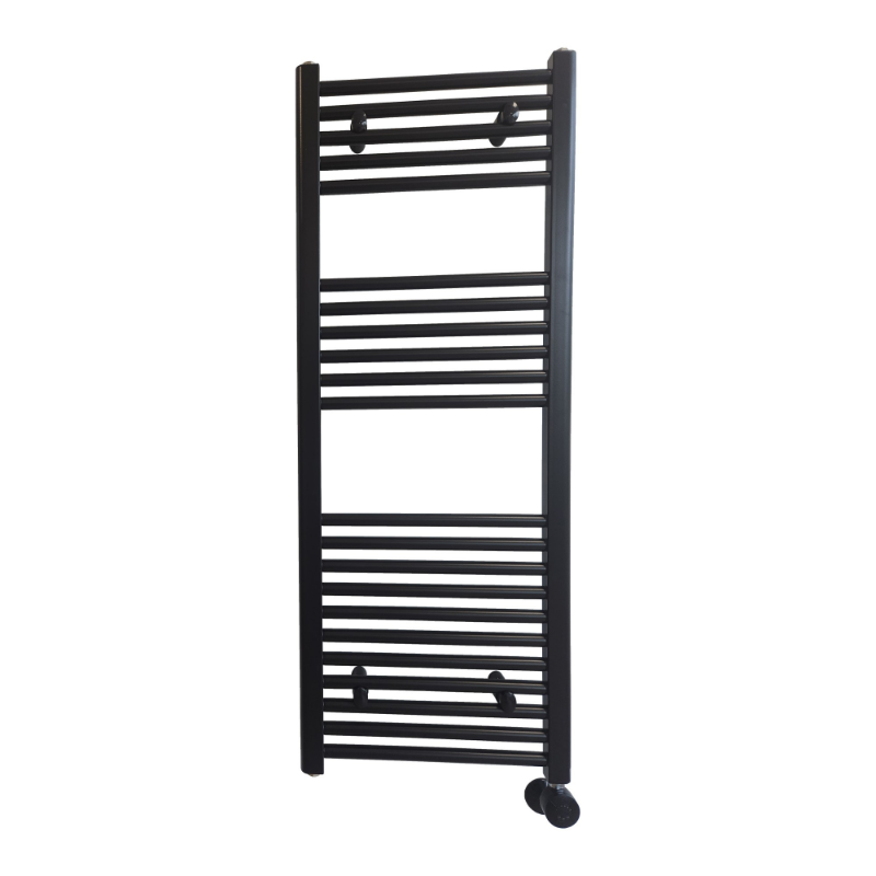This TRH Whitstable Towel Rail features a smooth black finish that adds a strong visual statement to bathroom spaces With a size of 1186mm height by 450mm width it fits comfortably in small to medium bathrooms This vertical designer towel rail pairs well with modern fittings and minimalist designs