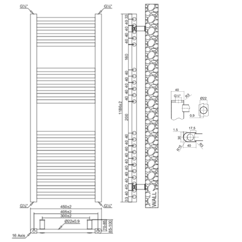 Wall to Pipe Centre (mm)N/AHeight (mm) x Width (mm)1186x450