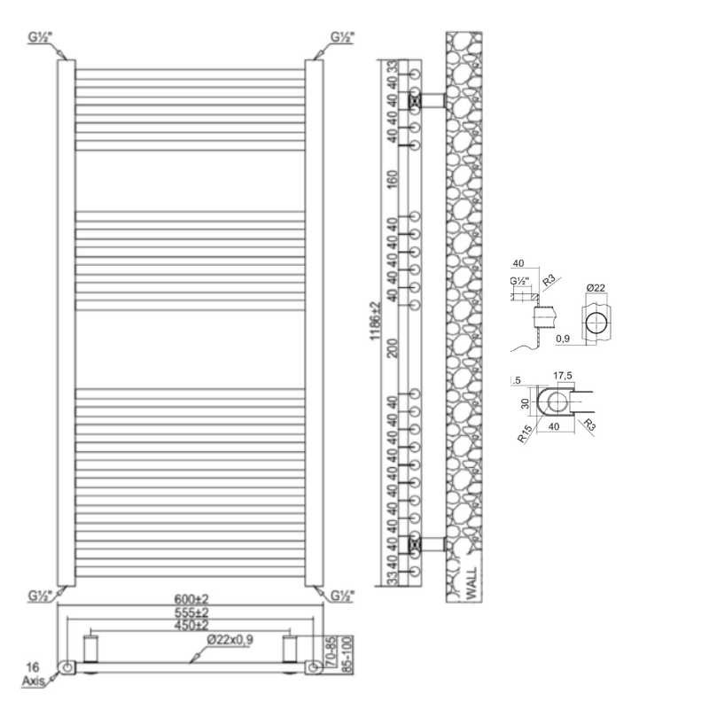 | Wall to Pipe Centre (mm) | N/A | Height (mm) x Width (mm) | 1186x600 |