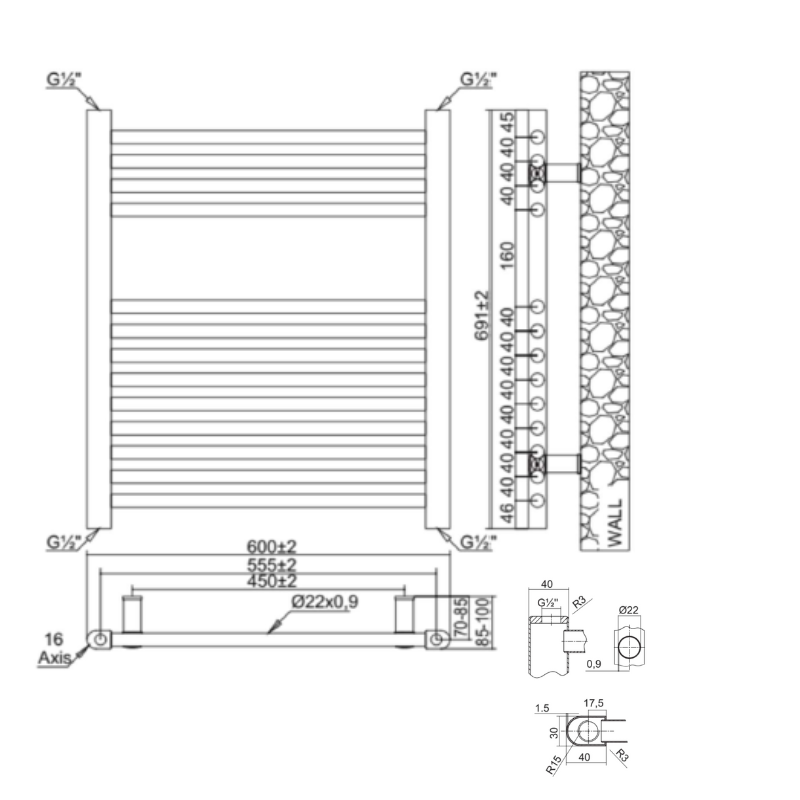 Wall to Pipe Centre (mm)N/AHeight (mm) x Width (mm)691x600